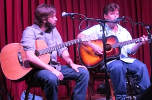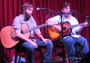Seit rund 15 Jahren sind Owen Temple (OT) und Adam Carroll (AC) feste Bestandteile der texanischen Songwriter Szene. Im Lauf der Zeit haben sie viele Gemeinsamkeiten entdeckt. Beide schreiben neben sozialkritischen und lebensnahen auch humorvolle Lieder. Der Produzent ihrer Erstlingswerke 1997 (Temple) und 1999 (Carroll) war der legendäre Produzent Lloyd Maines (Vater des Ex-Dixie Chicks Natalie). Der gemeinsame Sinn für Humor auf der Bühne kommt bei den Fans gleichermassen gut an. Folglich haben sie sich entschieden, rund einmal pro Monat gemeinsam aufzutreten. Bei einem dieser Auftritte habe ich im Cactus Cafe auf dem Gelände der Texas University of Austin mit den beiden gesprochen.